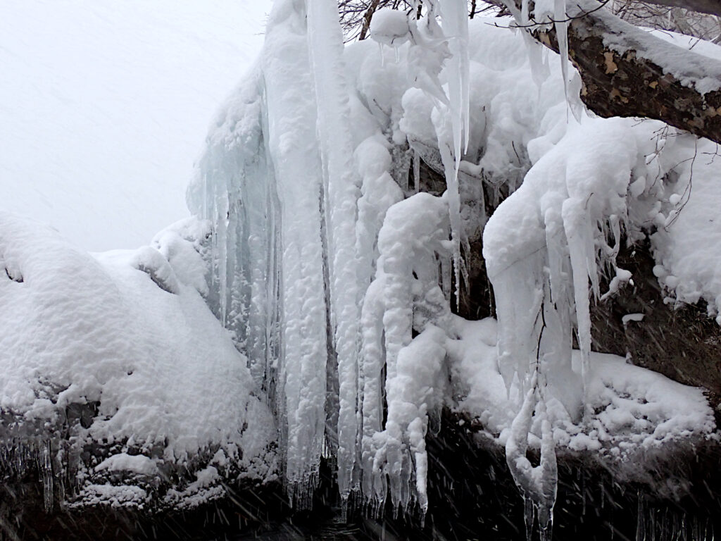 名所の小畳石は水位が高くて奥まで行けませんでしたが、しぶき氷はたくさんできていました。