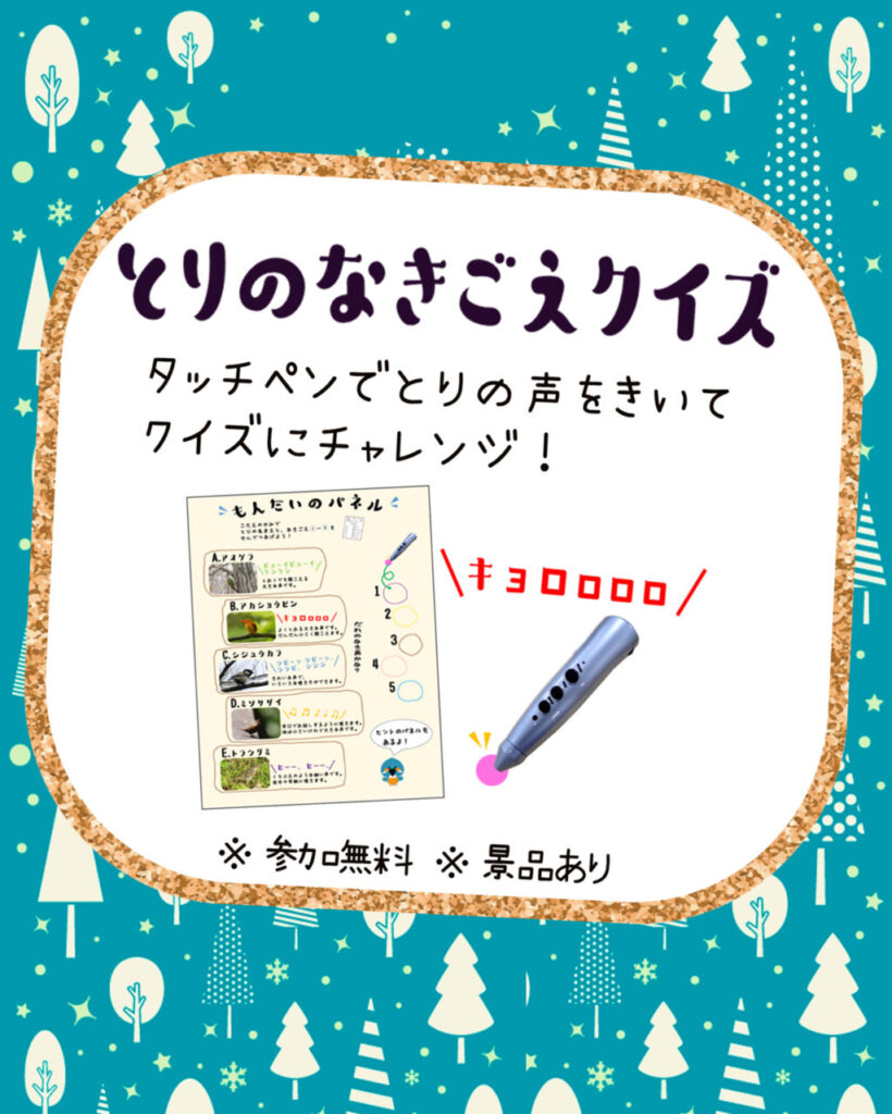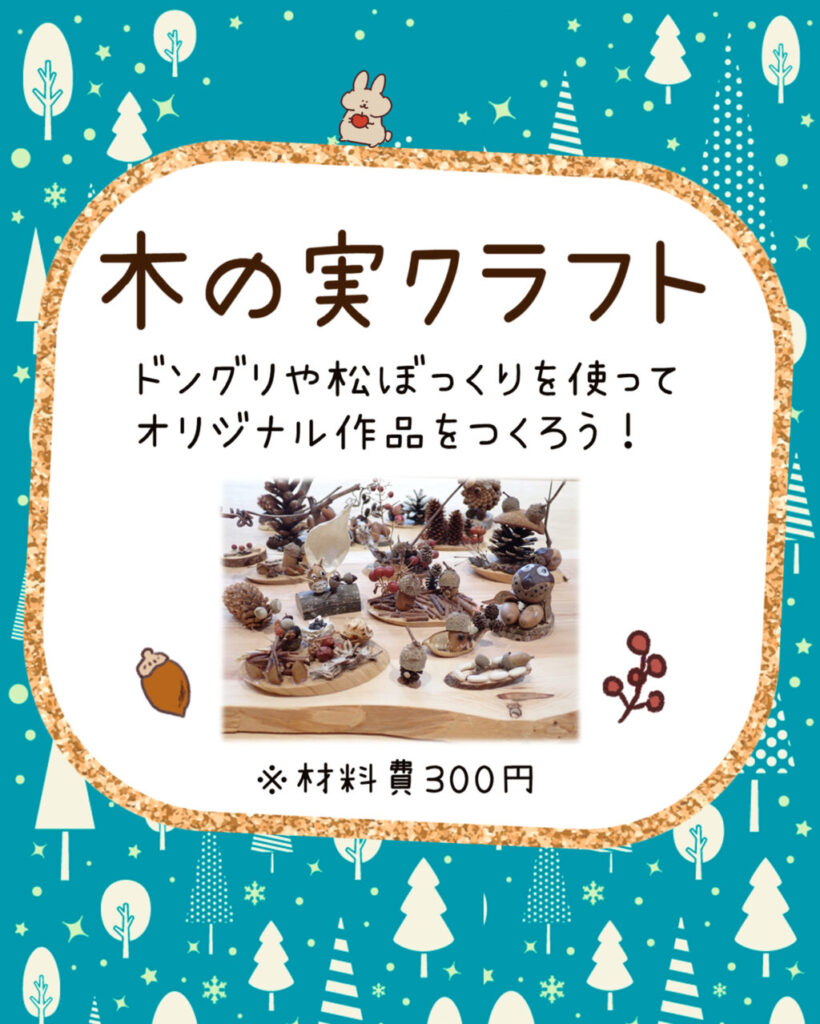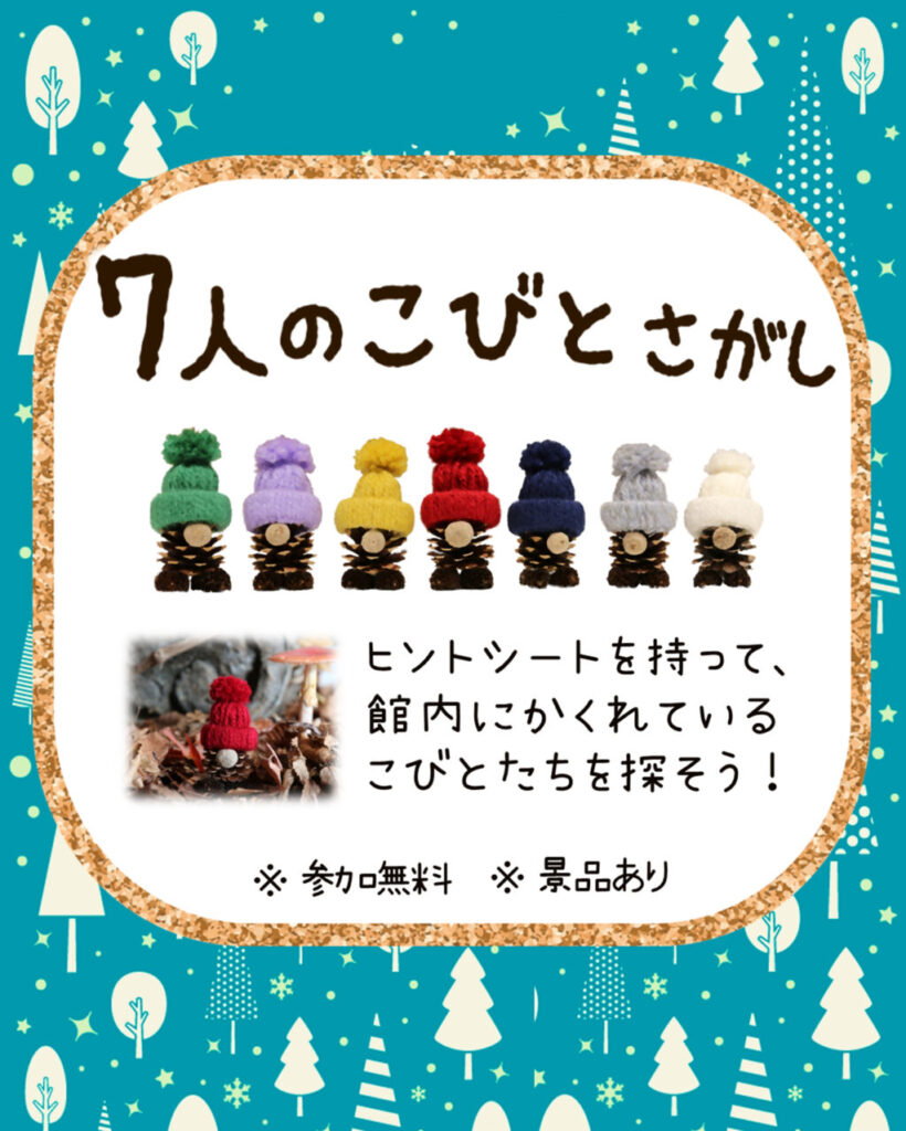 クイズラリーやこびとさがし、木の実クラフトなど館内で遊べるイベントをたくさん準備しています。