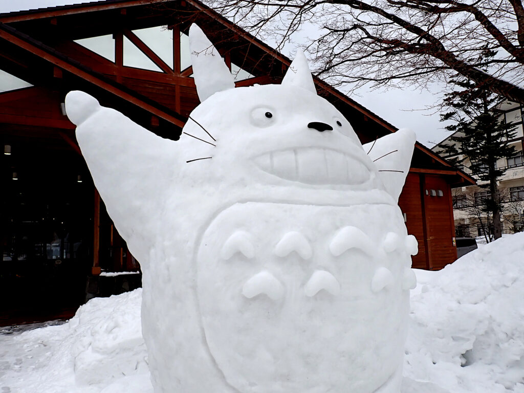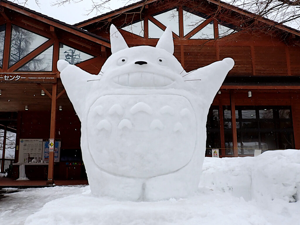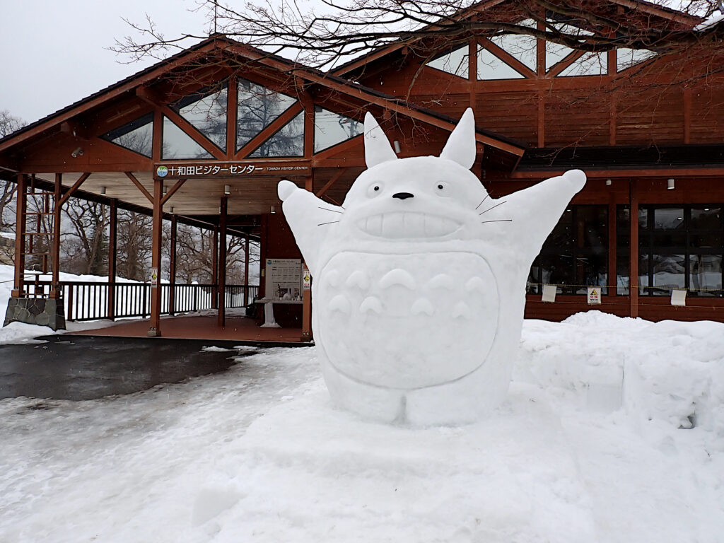 ビジターセンター玄関前にトトロの雪像が出現!